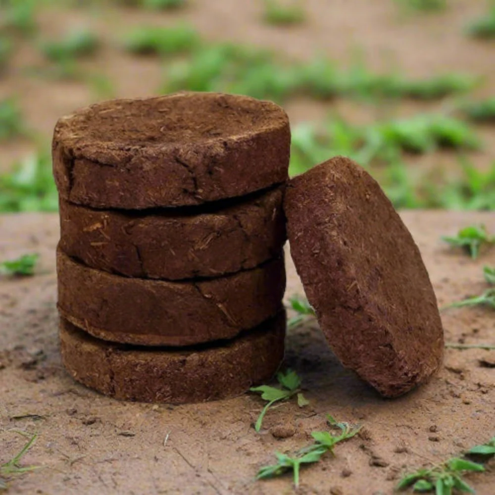 Uniformly shaped cow dung cakes that are easy to handle, store, and suitable for both traditional and agricultural use.